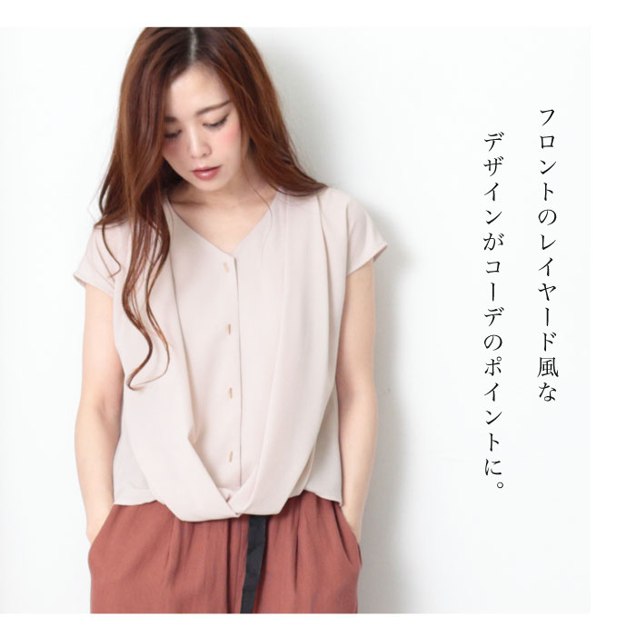 さらりと滑らかな生地に、すっきりとしたVネックとフレンチスリーブが上品に♪
