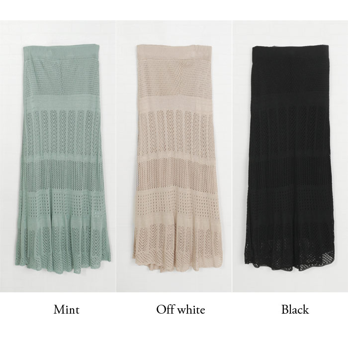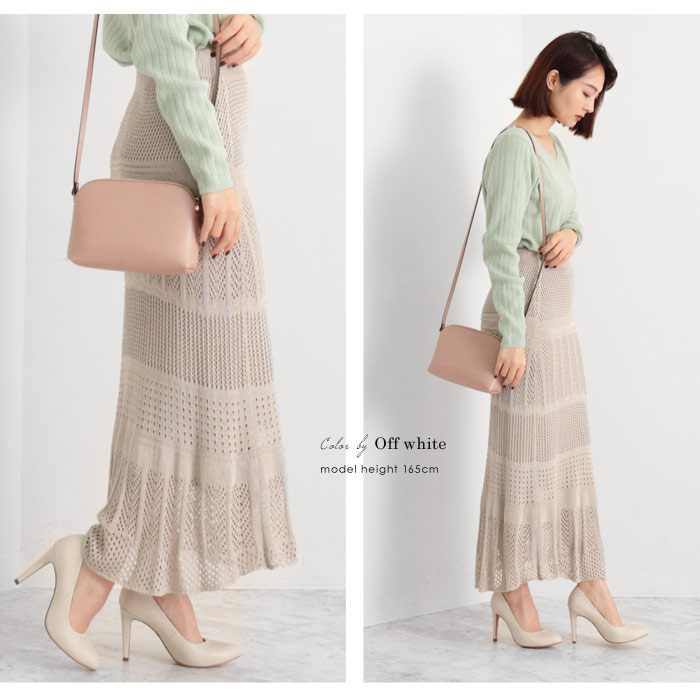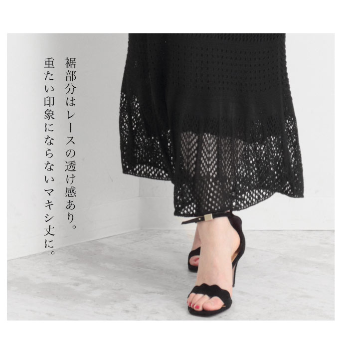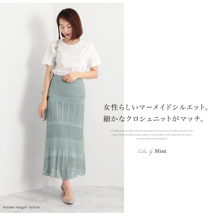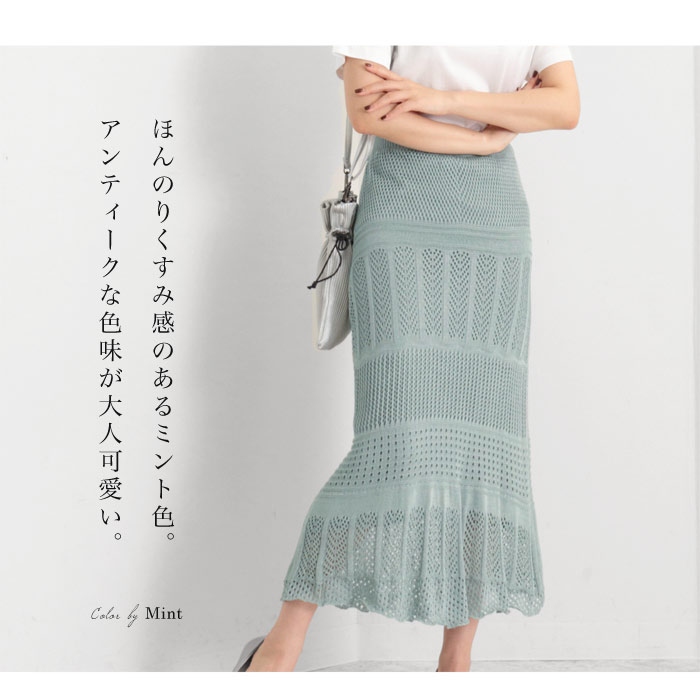 細やかなクロシェニットが女性らしいロング丈マーメイドスカート。